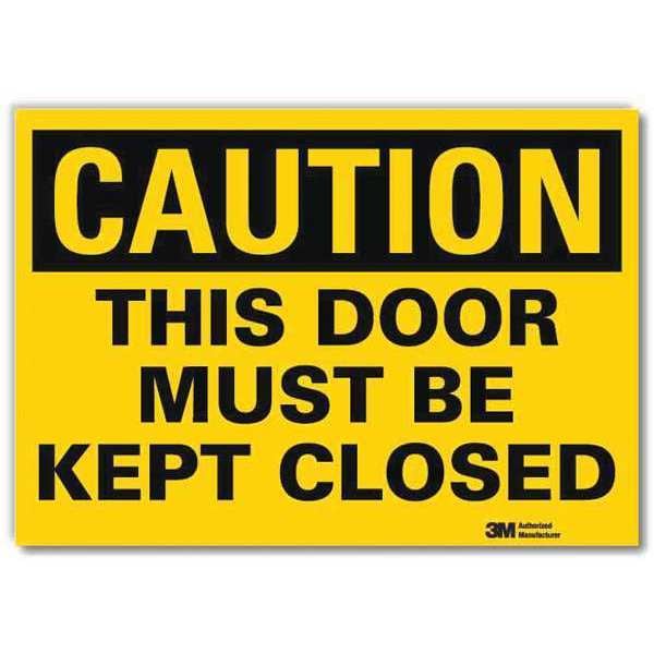 Safety Sign, Vertical Rectangle, Number of Printed Sides 1, English, Sign Legend This Door Must Be Kept Closed, Sign Legend Background Color Yellow, Sign Legend Style Text