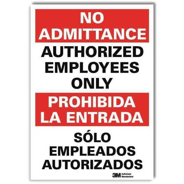 Safety Sign, Vertical Rectangle, Number of Printed Sides 1, English, Sign Format Traditional OSHA, Sign Legend Authorized Employees Only/Solo Empleados Autorizados, Sign Legend Background Color White, Sign Legend Style Text