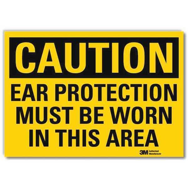 Caution Sign, Vertical Rectangle, Number of Printed Sides 1, English, Sign Format Traditional OSHA, Sign Legend Ear Protection Must Be Worn In This Area, Sign Legend Background Color Yellow, Sign Legend Style Text