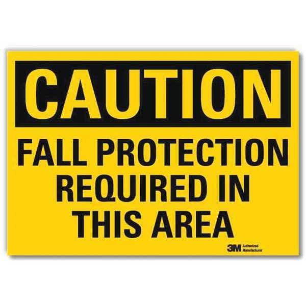 Caution Sign, Horizontal Rectangle, Number of Printed Sides 1, English, Sign Format Traditional OSHA, Sign Legend Fall Protection Required In This Area, Sign Legend Background Color Yellow, Sign Legend Style Text