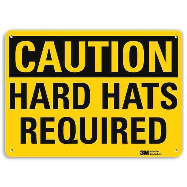 Caution Sign, Vertical Rectangle, Number of Printed Sides 1, English, Sign Format Traditional OSHA, Sign Legend Hard Hats Required, Sign Legend Background Color Yellow, Sign Legend Style Text