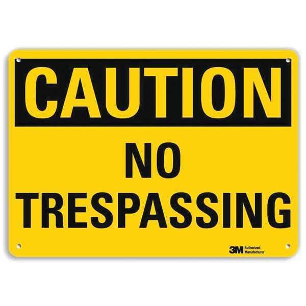 Safety Sign, Horizontal Rectangle, Number of Printed Sides 1, English, Sign Format Traditional OSHA, Sign Legend No Trespassing, Sign Legend Background Color Yellow, Sign Legend Style Text