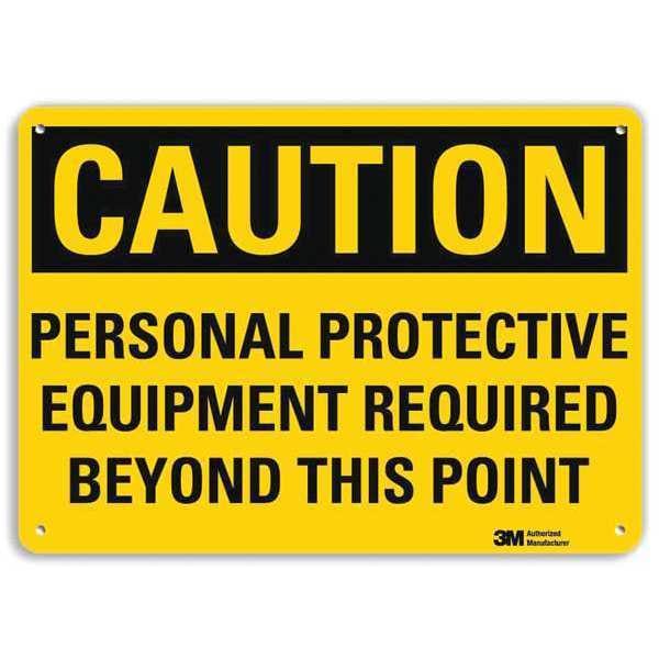 Safety Sign, Horizontal Rectangle, Number of Printed Sides 1, English, Sign Format Traditional OSHA, Sign Legend Personal Protective Equipment Required Beyond This Point, Sign Legend Background Color Yellow, Sign Legend Style Text