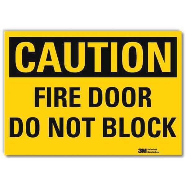 Safety Sign, Vertical Rectangle, Number of Printed Sides 1, English, Sign Legend Fire Door Do Not Block, Sign Legend Background Color Yellow, Sign Legend Style Text