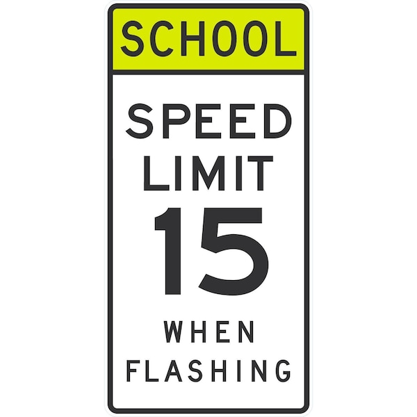 School Speed Limit 15 When Flasting, 24x48, Diamond Grade, White