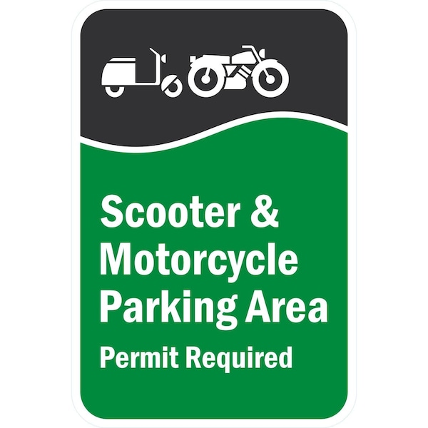 Scooter & Motorcycle Parking Area. Permit Required With, 12x18, Engineer Grade, White