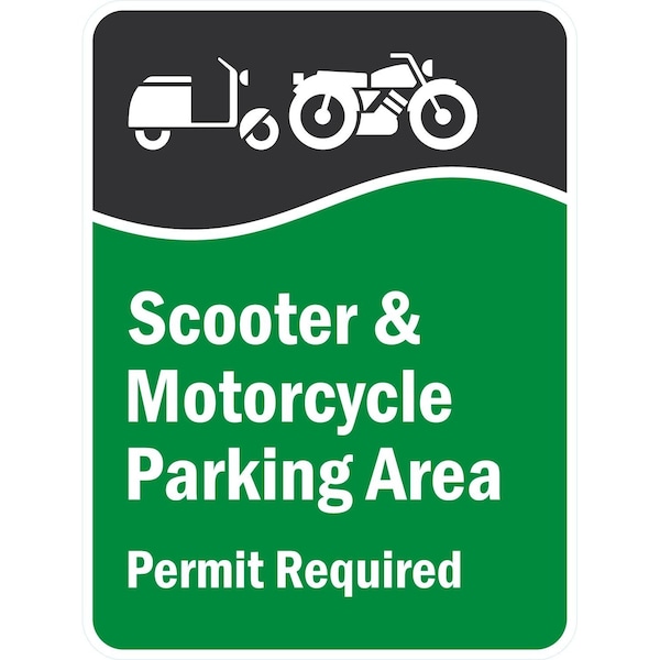 Scooter & Motorcycle Parking Area. Permit Required With, 18x24, Non-Reflective, White