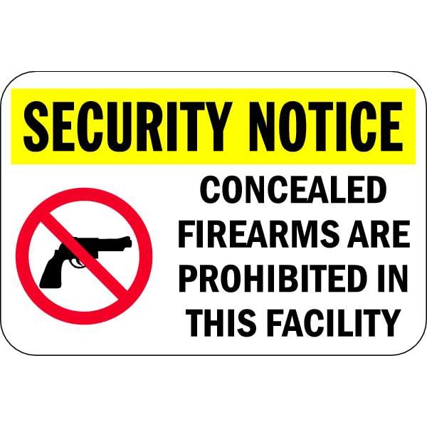 Security Notice, Concealed Firearms Are Prohibited In This Facility, 18 in W x 12 in H, Aluminum