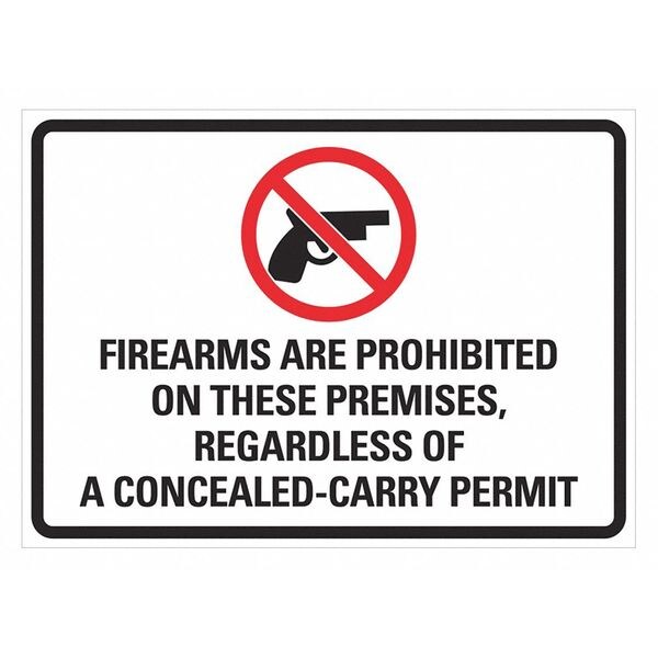 Security Sign, Horizontal Rectangle, Number of Printed Sides 1, English, Sign Legend Firearms Are Prohibited On These Premises, Regardless Of A Concealed-Carry Permit, Sign Legend Background Color White, Sign Legend Style Symbol and Text, Package Quantity 2