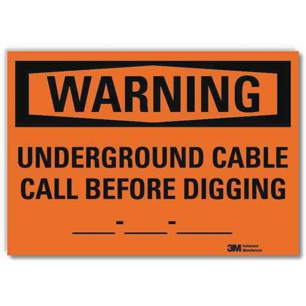 Security Sign, Vertical Rectangle, Number of Printed Sides 1, English, Sign Format Traditional OSHA, Sign Legend Underground Cable Call Before Digging ___-___-___, Sign Legend Background Color Orange, Sign Legend Style Text