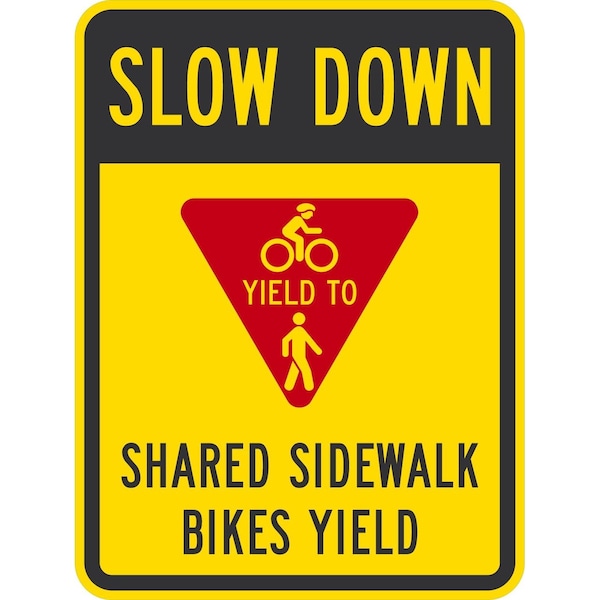 Shared Sidewalk Bikes Yield (Cyclists & Pedestrian Symbol), 18x24, Non-Reflective, White