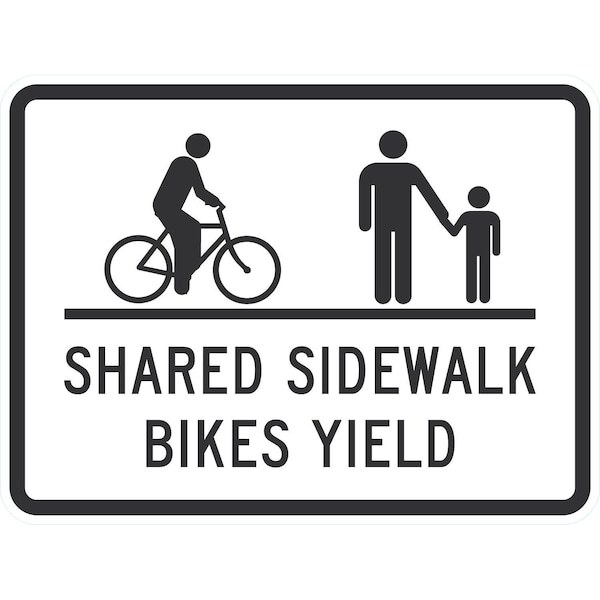Shared Sidewalk Bikes Yield (W/Sym), 24x18, Non-Reflective, White
