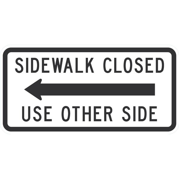 Sidewalk Closed (Left Arrow) Use Other Side, 48x24, Engineer Grade, White