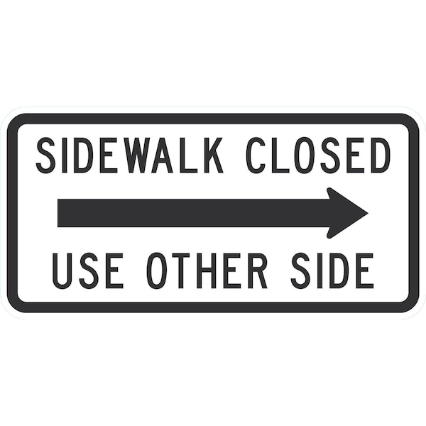 Sidewalk Closed (Right Arrow) Use Other Side, 24x12, Diamond Grade, White