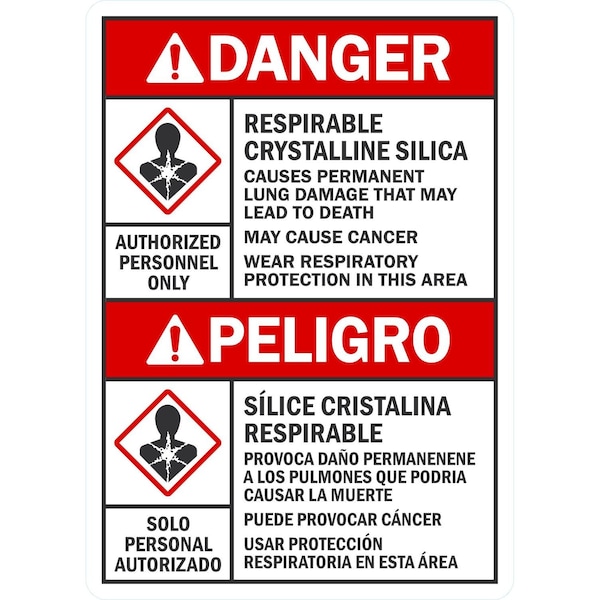 Silica Warn. Sign, Bilingual,Vinyl,10x14