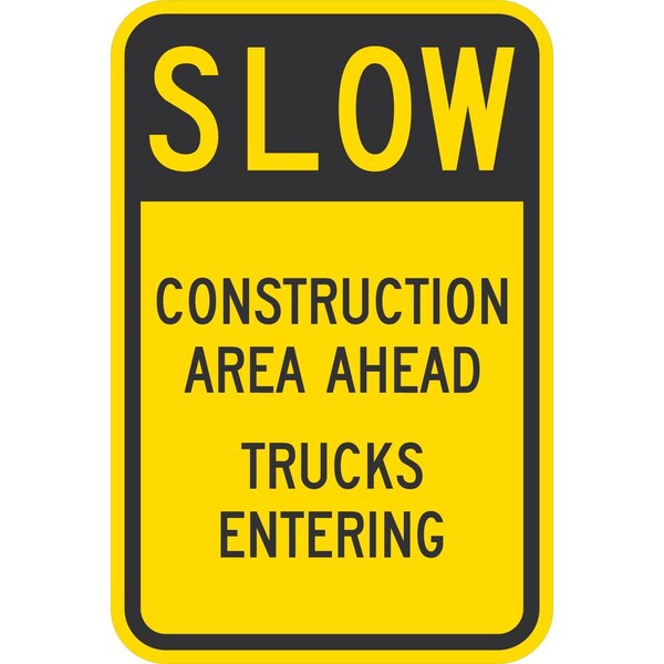 Slow Construction Area Ahead Trucks Entering, 12x18, Engineer Grade, Yellow