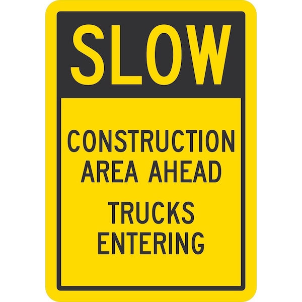 Slow, Construction Area Ahead Trucks Entering, 7x10, Engineer Grade, Yellow Green