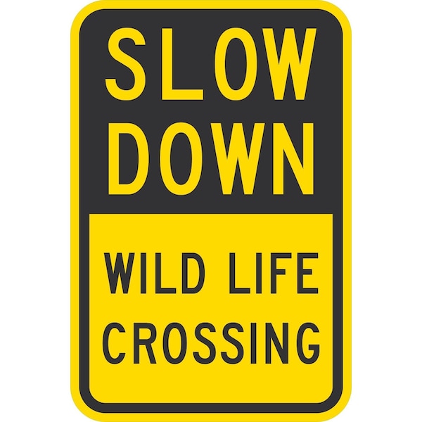 Slow Dow Wild Life Crossing, 12x18, Non-Reflective, Yellow