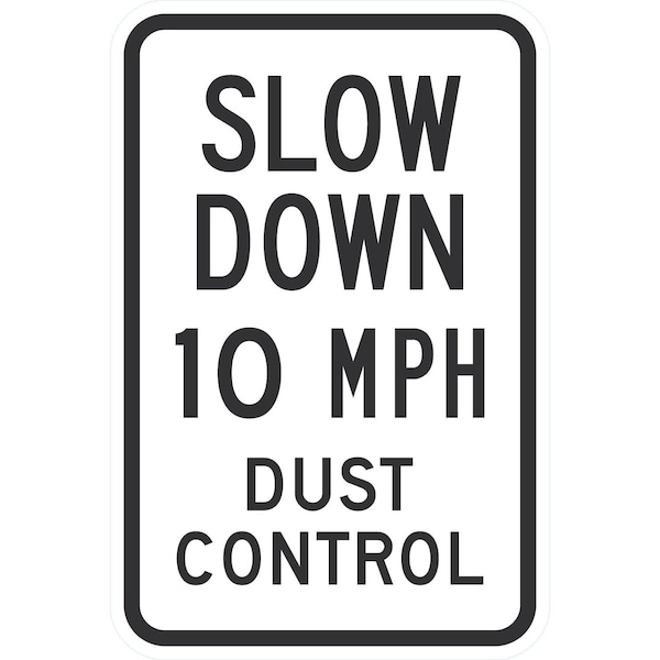 Slow Down 10 Mph Dust Control, 12x18, High Intensity Prismatic, White