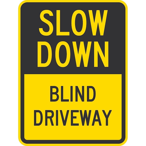 Slow Down Blind Driveway, 18x24, Engineer Grade, Yellow