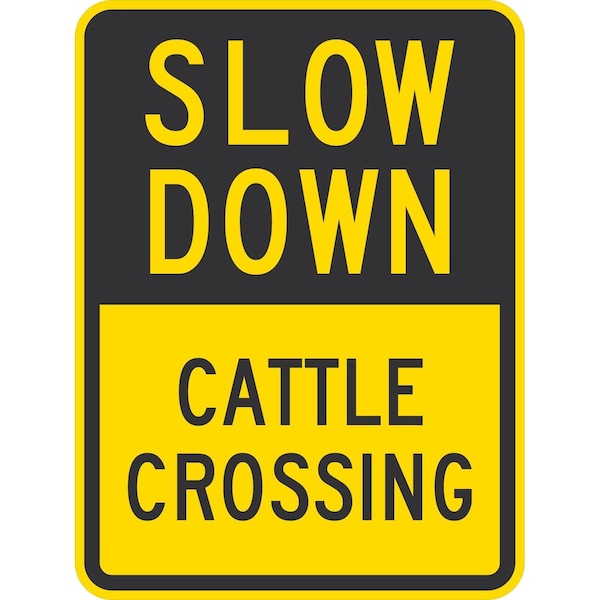 Slow Down Cattle Crossing, 18x24, Engineer Grade, Yellow