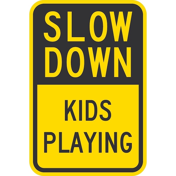 Slow Down Kids Playing, 12x18, Non-Reflective, Yellow
