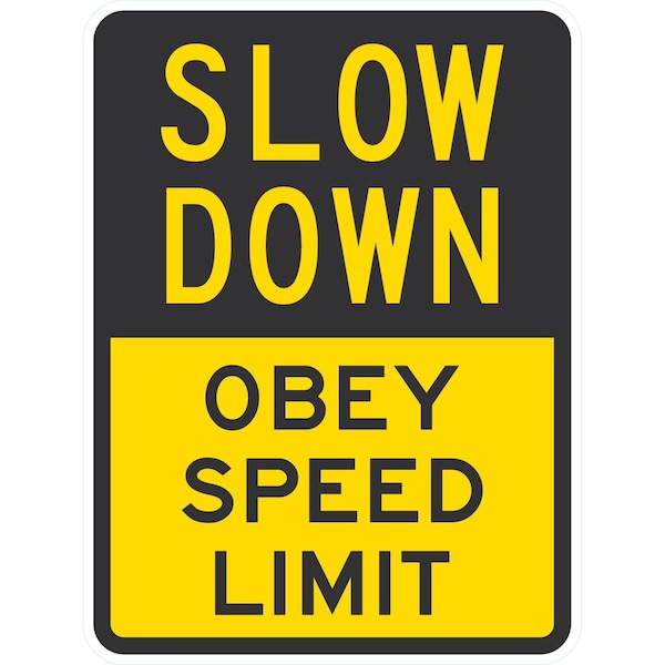 Slow Down Obey Speed Limit, 18x24, Engineer Grade, Yellow