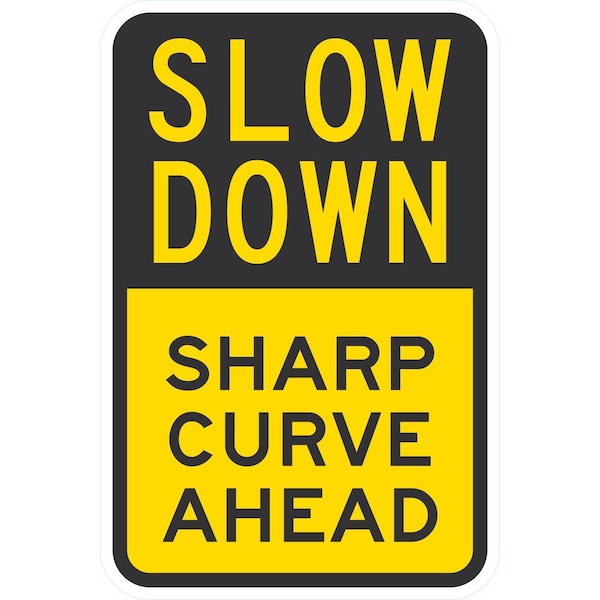 Slow Down Sharp Curve Ahead, 12x18, Engineer Grade, Yellow
