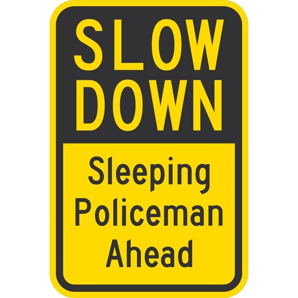 Slow Down: Sleeping Policeman Ahead, 12x18, Diamond Grade, Yellow