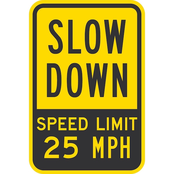 Slow Down Speed Limit 25 Mph, 12x18, Engineer Grade, Yellow