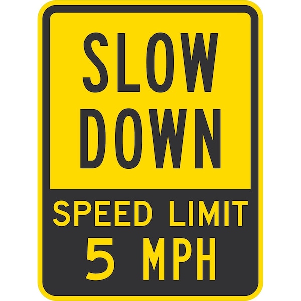 Slow Down Speed Limit 5 MPH, 18x24, Engineer Grade, Yellow