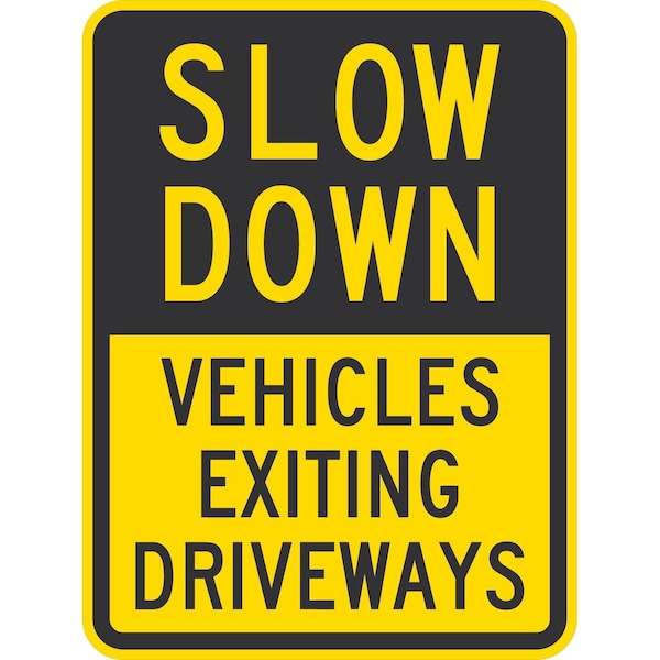 Slow Down Vehicles Exiting Driveways, 18x24, Non-Reflective, Yellow