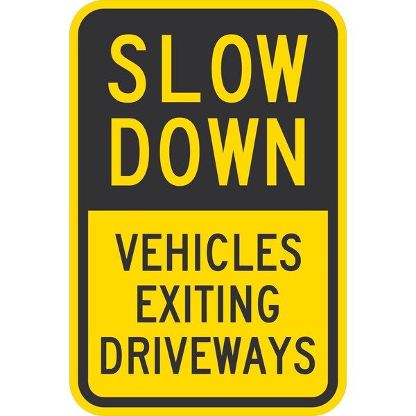 Slow Down Vehicles Exiting Driveways, 24x30, Engineer Grade, Yellow