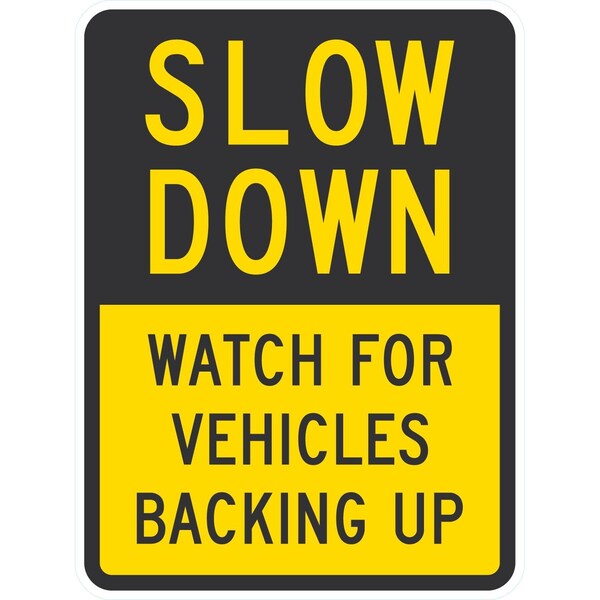 Slow Down Watch For Vehicles Backing Up, 18x24, Engineer Grade, Yellow
