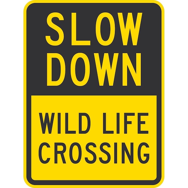 Slow Down Wild Life Crossing, 18x24, Non-Reflective, Yellow