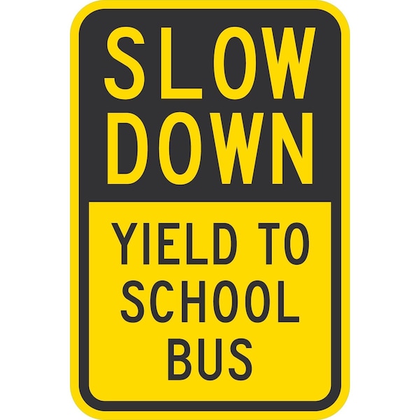 Slow Down Yield To School Bus, 12x18, Non-Reflective, Yellow