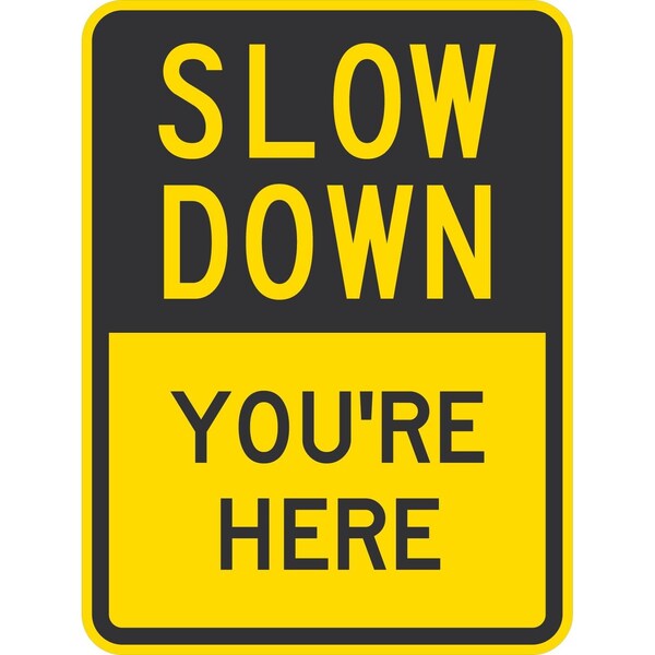 Slow Down You'Re Here, 18x24, Non-Reflective, Yellow