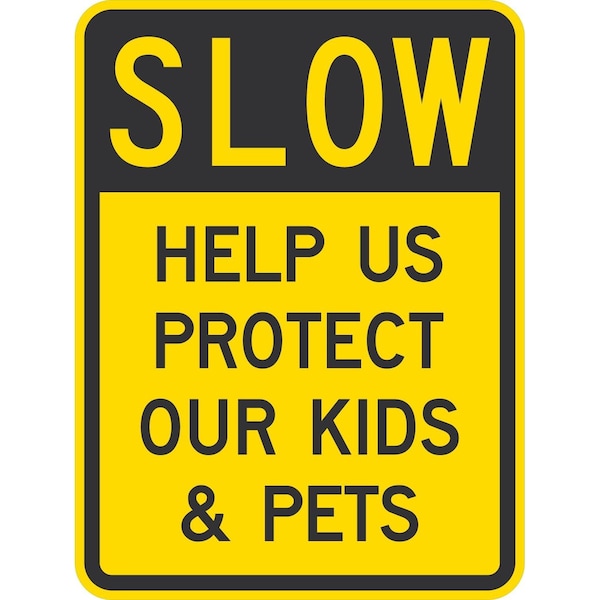 Slow Help Us Protect Our Kids & Pets, 18x24, Non-Reflective, Yellow