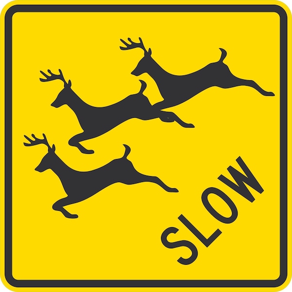 Slow Multiple Deer Crossing Symbol, 24x24, Diamond Grade, Yellow