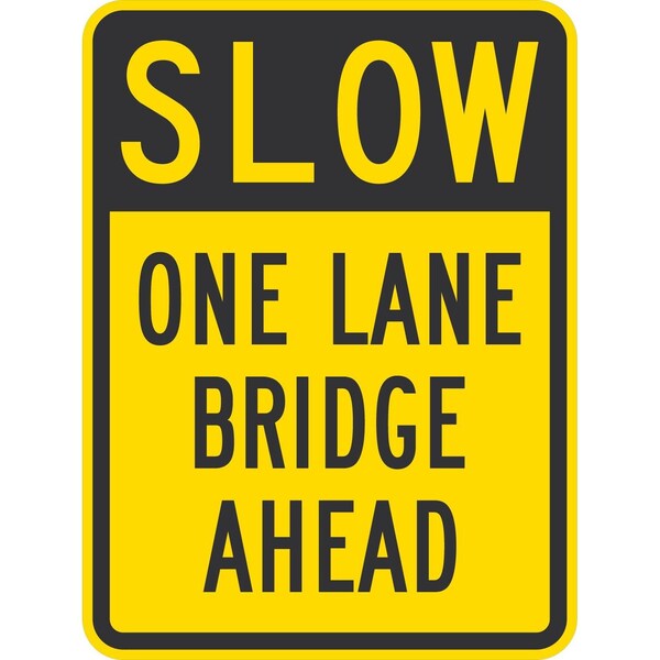 Slow One Lane Bridge Ahead, 18x24, Non-Reflective, Yellow