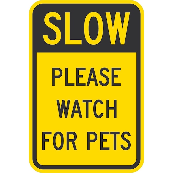 Slow Please Watch For Pets, 12x18, Diamond Grade, Yellow
