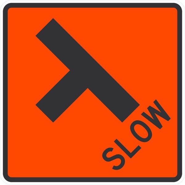 Slow Side Road (W/ T-Junction Left Symbol), 24x24, Engineer Grade, Orange