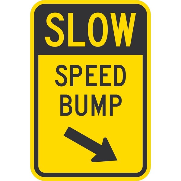 Slow Speed Bump (with Down Arrow Pointing Right), 12x18, Diamond Grade, Yellow