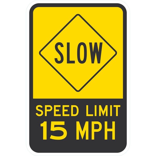 Slow, Speed Limit 15 MPH, 12x18, Engineer Grade, Yellow