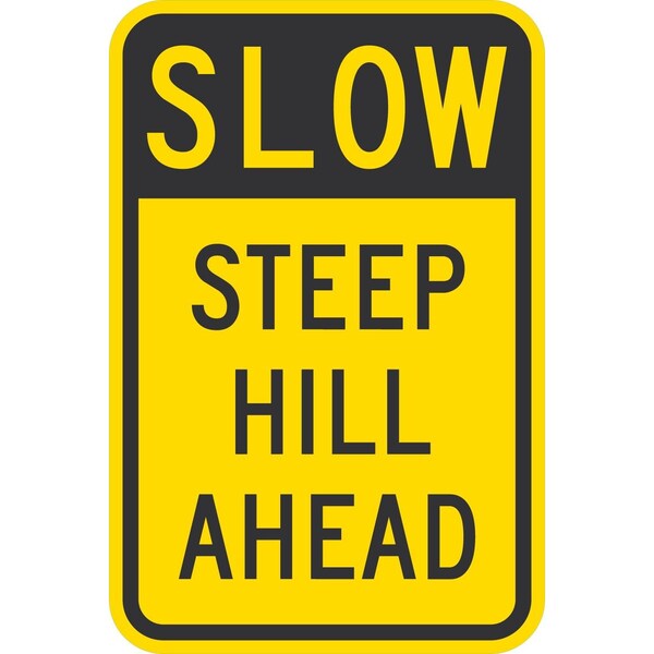 Slow Steep Hill Ahead, 12x18, Engineer Grade, Yellow