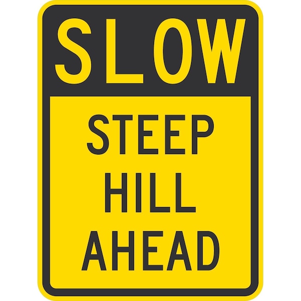 Slow Steep Hill Ahead, 18x24, Non-Reflective, Yellow