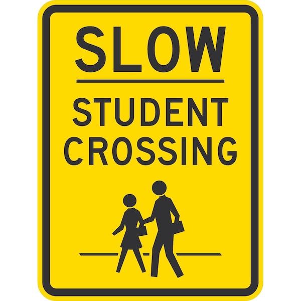 Slow (Underlined) Student Crossing (With Symbol), 18x24, High Intensity Prismatic, Yellow
