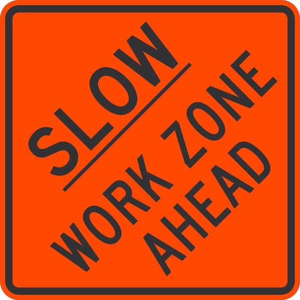 Slow Work Zone Ahead, 36x36, Engineer Grade, Orange