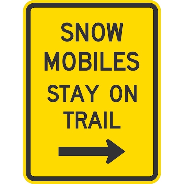 Snow Mobiles Stay On Trail (w/Right Arrow), 18x24, Engineer Grade, Yellow