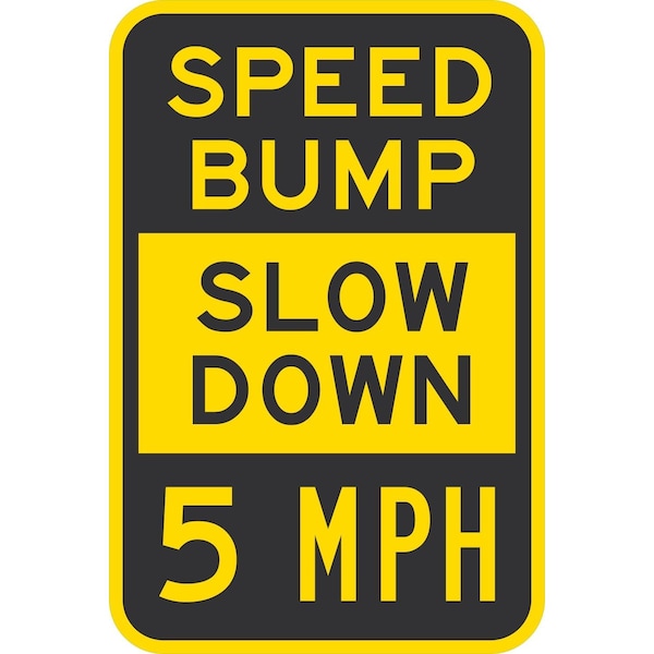 Speed Bump Slow Down 5 Mph, 12x18, Engineer Grade, Yellow